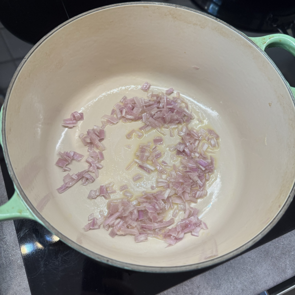 In a large pan, melt 2 tablespoons of butter over medium heat. Add the chopped charlottes and sauté until they are soft and translucent, about 2-3 minutes.