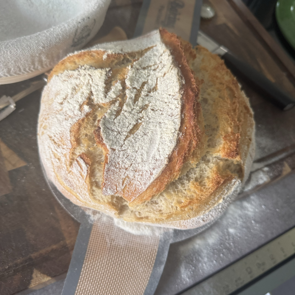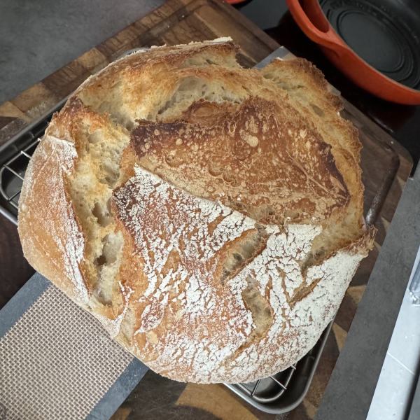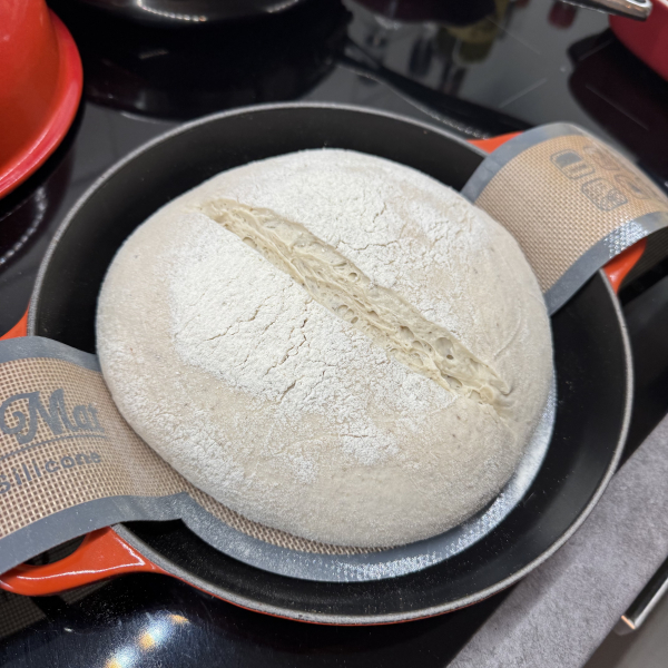 Bake for 40 minutes with the lid on. This creates a steamy environment that allows the bread to achieve maximum oven spring. -